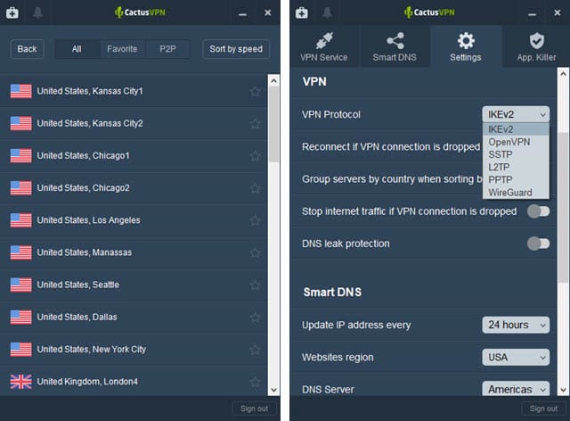 支持 PPTP、L2TP/IPSec 和 Open加速器 协议。系统中遍布世界各地的各种网络节点信息,并添加了许多行来呈现。